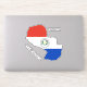 Paraguay Flag Map Outline Sticker in the outline of the Paraguay map. The map is infused with the pattern and the colors from the Paraguay national flag. Small stickers with the country name are also included. Paraguay map sticker is the perfect sticky gift that can be placed anywhere your heart desire. © CountriesOfTheWorld