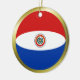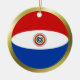 Both sides of this ornament feature the flag of Paraguay morphed into a circle with a golden rim. Simple Paraguayan decoration for your home.