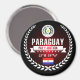 Well Designed High Quality Magnet. Colors are Vibrant Clear Excellent good size Diameter Circumference Fonts Red Folio Bold Clover Green Outline Puffy White Interior Image