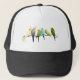 A group of cute little parakeets and cockatiels, sitting on a perch :)