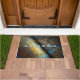 A multi-colored, fractal image depicting opposed patchwork, metallic, parallel surfaces on a starry background. Add your own text.