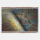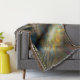 A quality printed throw has its advantages. This is a much finer weave throw than its loopier cousins, and though lighter, it is worth the investment for custom room accessorizing. The back is much prettier than the typical brown, and the fringe on the long sides very vivid, the selvage nicely done. Before photographing, I washed the throw in cold water, delicate, with a thicker woven throw the same size. On tumble dry low, this throw was dry in half the time as the other. This is a very practical quality if you use throws for furniture covers or to wrap up in frequently. The sleekness of the fabric makes it a great layer for accenting or protecting without the feeling of sitting on too much stuff. Perfect for napping or when you feel a light chill coming on. The color printing is beautiful and on this fabric, matched the design and color of my Photoshop image. This is an advantage for blending room fabrics and colors. The fringe on the short sides prints the colors from the design image and therefore varies from the side fringe. I streaked a white fractal line through the plaid pattern to give the illusion of weaving. This printed as crisp as an illusory thread, and put some white in the short side fringe, showing another advantage of print vs loomed- for artistic purposes, line lines, detail, and color integrity can be planned and preserved. My loomed throws have color limitations and more of a needlepoint texture. Print throws reproduce an exact image. The throw felt a little stiff straight out of the package, but this went away in the first delicate wash. Of course I searched the wash water for ink or bleeding and there was none.