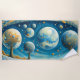 A surreal landscape unfolds, where planets and trees intertwine in a harmonious dance. The sky is awash with swirling celestial bodies, each planet-like tree bearing its own miniature cosmos. A winding path leads the eye through this fantastical scene, inviting the viewer to explore the depths of imagination.