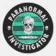 A Distressed Paranormal Investigator Sticker featuring a skull and EVP graphic on a green retro background
