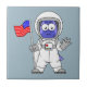 Parasaurolophus Astronaut Holding American Flag. Ceramic Tile