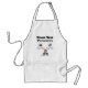 The apron is of very good quality. I used it while icing cookies. The dark colored icing washed off of the apron very well! The neck strap is sturdy and easy to resize on the adult size apron. The print was clear and well defined. I am glad I was able to personalize with name.