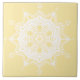 This white mandala sits on a light yellow background. The colors are happy and peaceful. Part of the Fenten Mandala Collection.