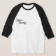 I bought the Men's Basic 3/4 Sleeve Raglan T-Shirt, White/Navy. It arrived on time for a gift and is of a great quality and fits perfectly! So cute! Zazzle has done it again! The printing was clear and filled in solidly.