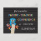 A cute little postcard to remind parent of their date , time and room number of their parent-teacher conference , so I can learn more about their child academic progress .