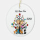 A cute, fun ceramic ornament featuring a stick figure mom and dad with toddler boy, baby girl, and three cats!