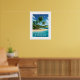 Poster is shown with a photo art print of a beautiful tropical beach.