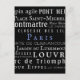 Vintage effect of names of landmarks in Paris, France written in white on black background. A delightful image to share, whether you're a Francophile or you just love words.