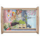 Bring the charm of a Paris morning into your home with this elegant serving tray featuring a delightful balcony breakfast scene. A black cat watches the Eiffel Tower while croissants, strawberries, and coffee are set on a classic French checkered table overlooking the rooftops of Paris. Perfect for serving breakfast, coffee, or tea, this tray adds a touch of Parisian café style to your kitchen, dining table, or brunch gatherings. A wonderful gift for cat lovers, Paris enthusiasts, and fans of cozy European home décor. Original artwork by Caroline Bonne Müller.