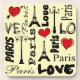 Paris text design for Valentine's Day with red heart shapes, Eiffel Tower and street lamps decoration on yellow background