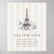 Design your own Parisian-inspired party sign with this customizable Paris Bloom template from Redwood & Vine Design Co. Featuring a charming Eiffel Tower, blush and greenery floral details, and soft ivory stripes, this versatile sign works beautifully for bridal showers, engagement parties, weddings, or any French-themed celebration. Available in printed or printable options to suit your event needs.