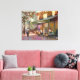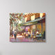 A Paris sidewalk cafe available in sizes from 8x10 to 24x36. Image wrapped to the sides. Colors are gold, green and pink. French art by REIFSNYDER©