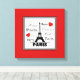 Paris text design illustration with Eiffel Tower and red hearts decoration in black and white squares on red background