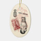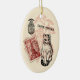Paris Cat french postage with Eiffel Tower cream Christmas ornament