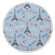 Seamless Paris text design illustration with Eiffel Tower, tricolor heart shapes and French flag decoration on blue background for Valentine's Day