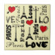 Paris text design for Valentine's Day with red heart shapes, Eiffel Tower and street lamps decoration on yellow background