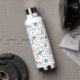 The bottle looks even better in real life. The ice cubes I put in lasts all day! I have my bottle with me all the time. It's summer and having something cold to drink feels amazing. With this bottle I always have something super cold. I have only tried the hot drink once and it lasted a long time as well. The color blue is a navy blue and the white printed on it is vibrant. It printed perfectly. I love my personalized smile water bottle.