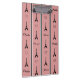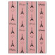 Paris illustration with Eiffel Tower and heart decoration and Paris text design on black, white and pink striped background