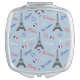 Seamless Paris text design illustration with Eiffel Tower, tricolor heart shapes and French flag decoration on blue background for Valentine's Day