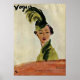 Image taken from Paris Cover, 1935 issue titled "Chapeaux et Tissus" (Hats & Fabrics). Sophisticated lady dressed in fabulous green and matching hat with up-swept plumes atop. Beautiful piece of memorabilia for the lover of fashion and vintage art! Image has been cleaned up and color retouched while still keeping its vintage charm.