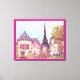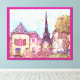 40x32" wrapped canvas of Paris Eiffel Tower inspired pointillism landscape by Kristie Hubler, with orchid fuschia border. Created in 2011, sister version of Paris Eiffel Tower inspired impressionist landscape by Kristie Hubler done in 2002. Originally done on 8 1/2" x 11" printer paper and 2 ounce bottles of craft store acrylic paint, plus colored pencil, and marker, tweaked digitally with Photoshop Elements. Paris Eiffel Tower inspired pointillism landscape by Kristie Hubler basically took the former art that it was based on, and slipped that into a sheet protector page, and painted over the main key features in the original, and filled in the rest a little differently. This one has sold on Keds sneakers, shower curtains, duvet covers, area rugs, bottle openers, bath sets, a Christmas stocking, fabric. This pointillism art was inspired by the famous pointillist painter Georges Seurat, who painted La Grande Jatte, hanging in the Metropolitan Museum of Art in New York City. Thank you! Kristie
