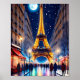 Paris Eiffel Tower at Night Poster – Romantic Cityscape Decor Bring the magic of Paris to your space with this stunning wall art featuring the Eiffel Tower illuminated against a starry night sky. With vibrant reflections on the rain-soaked street and a full moon overhead, this captivating cityscape transports you to a romantic Parisian evening. Perfect for adding elegance and wanderlust to any room, this art piece combines modern style with a timeless love for the City of Lights. Ideal as a gift for Paris lovers or as a focal point in your living room or bedroom!