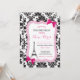 Paris Eiffel Tower Bow Damask Birthday Invite