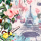A postcard from Paris. French themed, vintage, elegant artistic tissue paper featuring Eiffel Tower and a chic, retro design. Great for decoupage, scrap booking, and other paper craft.