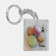 Paris France keychain with Eiffel Tower art and the famous colorful macaroons.