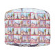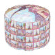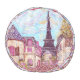 Paris Eiffel Tower pointillism pouf, art by Kristie Hubler, inspired by the shop facades inside Paris Las Vegas resort and casino, plus photos of Paris, France, the Eiffel Tower, and an aerial photo of Paris. Parisian adoration, ooh la la on this one!
