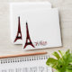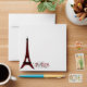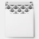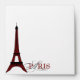 Red and black Eiffel Tower and stylized "Paris" text square envelope with black and white chandelier design interior. You can change the size and location of the Eiffel Tower and the text.