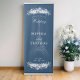 Our Paris Whisper wedding Welcome banner design evokes a romantic and lovely french elegance. Beautiful watercolor floral combination with whispers of french blue and soft lavender shades capture a Parisian elegance. The romantic typographic pairing of serifs and elegant script details further enhances the romantic style. A subtle hand-drawn Eiffel Tower imagery in faux silver against a blue backgroundis beautifully incorporated with our hand-painted french blue and soft lavender watercolor florals to capture the essence and elegant Parisian style. Artwork by Moodthology.