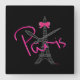PARIS, Eiffel Tower with pink Bow Square Wall Clock