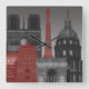 "Paris Elevations by Night Red" by Fab Funky. Features famous landmarks of Paris at nighttime in a red and grey color scheme.