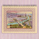 This elegant and unusual Victorian trade card image, awash in a beautiful lavender color, describes the layout of the 1900 Expo in Paris, France. A collection of boats travel lazily along the aquamarine blue Seine. A colorful, pink-tinted sky compliments the soft lavender colors of the central illustration.