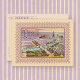 This elegant and unusual Victorian trade card image, awash in a beautiful lavender color, describes the layout of the 1900 Expo in Paris, France. A collection of boats travel lazily along the aquamarine blue Seine. A colorful, pink-tinted sky compliments the soft lavender colors of the central illustration. The title, 'Paris' is written on the beautiful image.