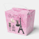 Romantic, pretty pink Paris take out favor box with the Eiffel Tower, French magazines, beautiful pink and black corset, dressmaker's mannequin, antique bird cage and hearts on a shabby chic pink vintage look background. An elegant, fun, trendy, glamorous gift for women and girls. Some elements purchased from Suz Brill at commercial-use-scraps.com. If you need any assistance customizing your product please contact me through my store and I will be happy to help.