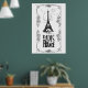 Lovely poster for any Francophile! A Paris, France poster with the Eiffel Tower front and center and the words Paris France in bold letters underneath, all surrounded with an ornate flower frame. Very artistic piece to add to any collection. Various sizes available.
