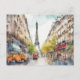 Colorful Paris France watercolor painting on a postcard. Cute gift idea for loved ones on birthday or christmas for every tourist who made a trip to the french capital. Perfect for every visitor of the historic city and french city.
