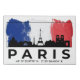 Artistic design for Paris lovers, featuring brush stroke flag, cityscape and gps coordinates.