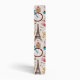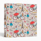 This design features a pattern with the Eiffel Tower, a girl on a bicyclewearing a beret, coffee and sweet Paris treats.