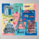 Global Travel II by Farida Zaman. Image features the city of Paris, France with various famous landmarks and elements of the city. | SID23322