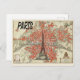 Anyone would love to receive this vintage French travel postcard featuring the Eiffel Tower and a retro map of the city of Paris, France!