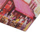 A cafe in Paris with sparkling reds to make the perfect glass cutting board decor. People sitting and enjoying the lively French atmosphere. Artwork by REIFSNYDER.