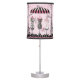 Trendy modern table lamp with a glamorous, elegant French Parisian fashion haute couture design in pretty pink and black with dressmaker mannequins with a zebra animal print dress, leopard / cheetah print dress and a corset dress. There is also a stylish pink and black boutique canopy above, a cute pink dragonfly, the Eiffel Tower , and the words Paris, Merci and Bonjour on a pink background with black shabby chic grunge swirls and flourishes details, a black rose, and printed images of diamonds and lace border. This beautiful, elegant, girly design is repeated in 3 panels. A fashionable, classy, fun, girlie, glamour design gift for dressmakers, hipsters, trend setters, fashion lovers, women, and teenage girls. A cool original gift her! If you need any assistance customizing your product please contact me through my store and I will be happy to help.