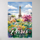 A watercolor painting depicting a picturesque view of Paris, France. The Eiffel Tower stands tall amidst vibrant blooming flowers and lush greenery. The painting evokes a sense of tranquility and beauty, capturing the essence of Paris as a city of dreams.